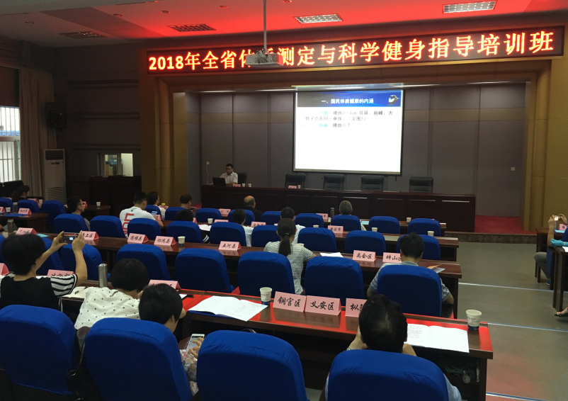 2018年7月6日,tyc33455cc经理章翔教授受邀在安徽省体质测定与科学健身指导培训班授课。本次培训班于7月6日至8日在合肥举行,由安徽省体育局主办、安徽省体育科学研究所承办。来自全省的180名体育工作者参加了为期2天的培训。
