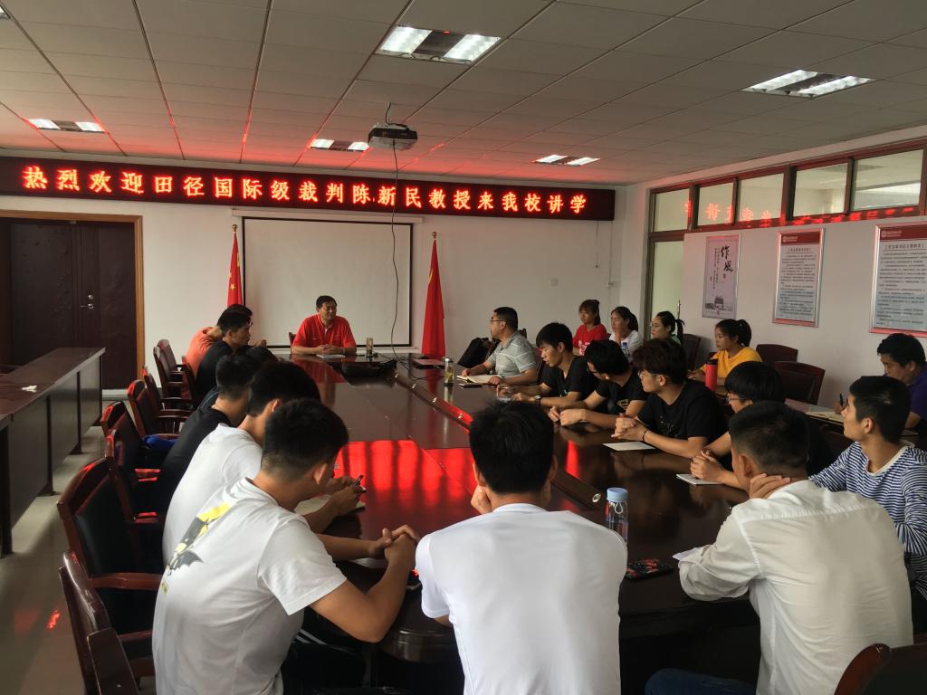 5月31日下午,安徽医科大学陈新民教授在体育馆会议室作了一场题为《田径竞赛规则解读》的学术讲座,讲座由tyc33455cc经理章翔教授主持,tyc33455cc相关教师和员工代表聆听了报告。