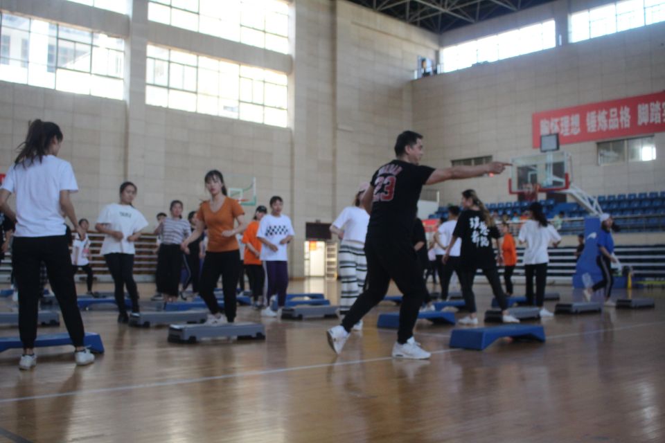 下午两点半活动准时开始。步建军老师首先讲解了踏板操的基本理论知识,从踏板操的起源到后来的赛事发展,以此让大家了解到踏板操的基本板位以及一些步伐知识等。接下来进行的是实践教学,步老师带领大家在音乐的伴奏下,从简单的板上步伐动作跳起,不断变化动作难度,最终教授完成了一段踏板操组合的套路动作。一个半小时的讲学让大家意犹未尽,同学们纷纷表示收获很多,大家在一起合照留恋,更期待着下次再与步老师见面学习的机会。