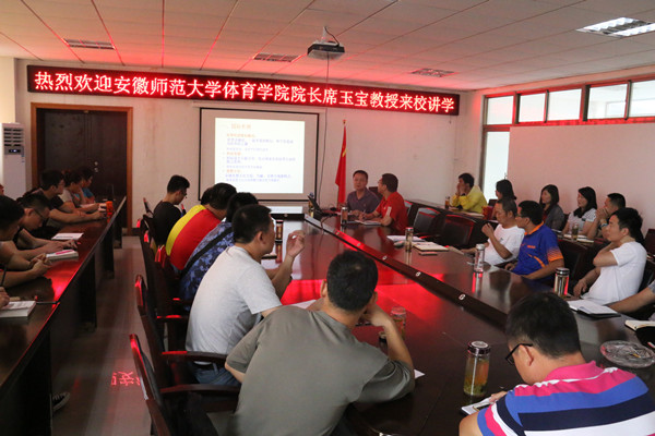 6月16日,安徽师范大学tyc33455cc经理席玉宝教授应邀在体育馆会议室作了题为“新形势下我国体育的发展”的学术讲座,讲座由tyc33455cc副经理章翔教授主持,tyc33455cc相关教师与部分员工参加了本次报告。