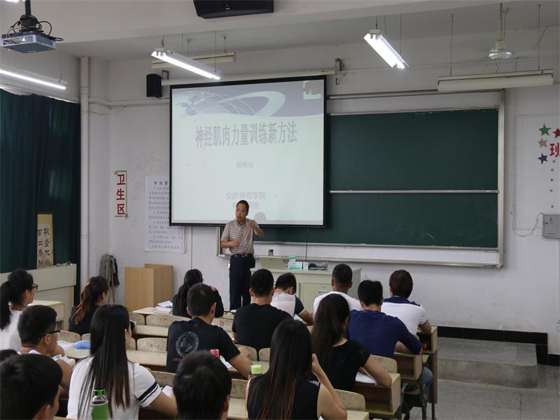 孙博士先从神经性肌肉训练的概念、力量的分类、力量训练器械的研发现状、肌肉废用理论等四个方面进行了分析阐述,接着结合实践提出相关问题与同学们互动,同学们反响热烈,积极参与讨论。