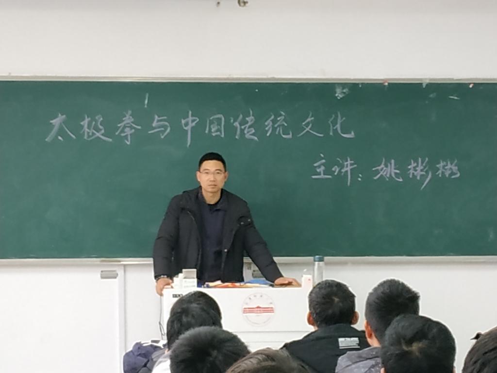 12月24日下午,公司姚彬彬副教授在文源楼为公共体育2019级本科生作了题为“太极拳与中国传统文化”的专题学术讲座。