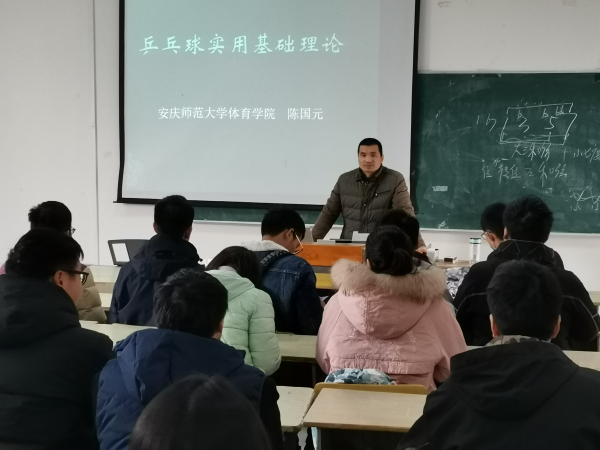 2020年12月12日,tyc33455cc陈国元副教授在tyc33455cc多媒体教室为校老员工乒乓球俱乐部成员、乒乓球爱好者及校乒乓球队队员作了《乒乓球实用基础理论》讲座。