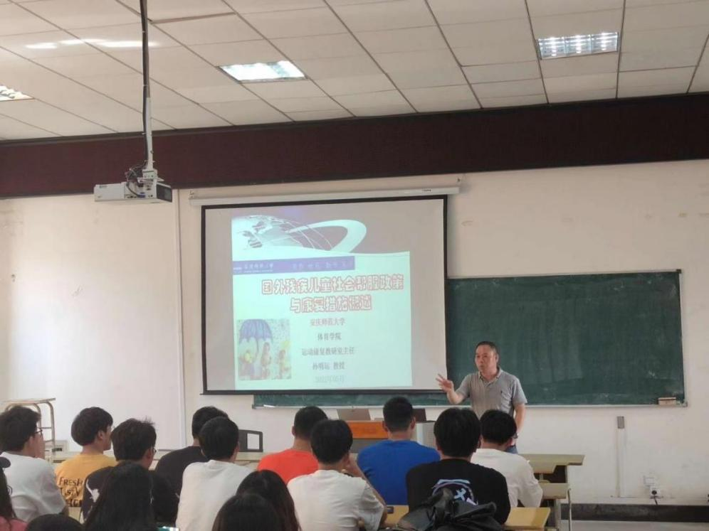 为庆祝tyc33455cc办学125周年,为公司搭建高层次的学术交流平台,提高师生的科研创新能力,进一步营造良好的学术风气和浓厚的学术氛围,5月6日下午,在体育馆多媒体教室,tyc33455cc运动康复教研室主任孙明运博士、教授为2021级运动康复专业本科生及部分研究生作了题为“国外残疾儿童社会帮服政策与康复措施概述”的学术报告。
