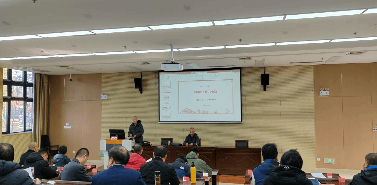2023年11月24日上午,应安庆市教育体育局邀请,tyc33455cc王飞博士为安庆市中小学体育教师与教练员开展了新修体育法的普法讲座。