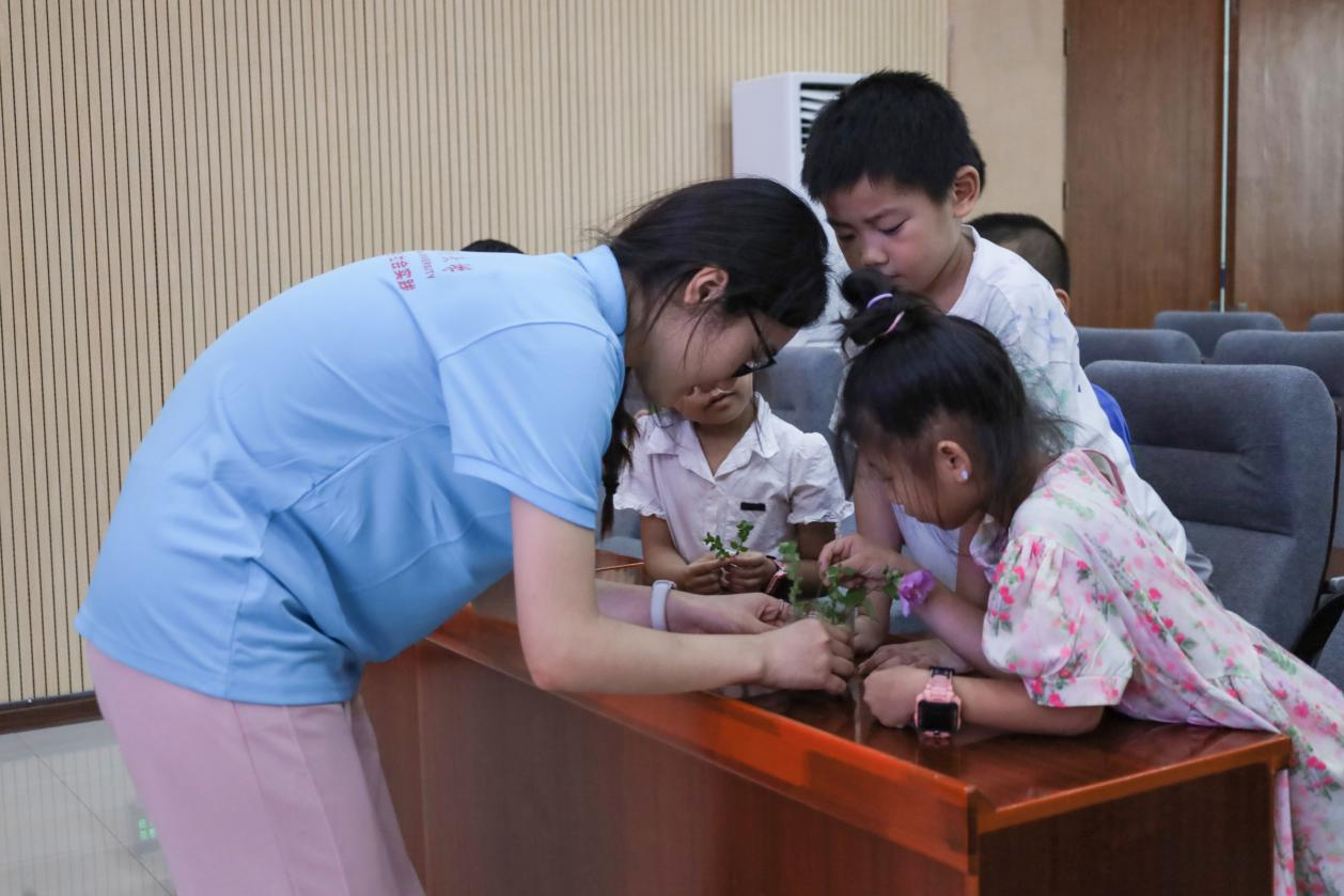 “苔藓绿枝,金鱼蚯蚓,泥土岩石,这些生产者、消费者、分解者构成了玻璃杯里的‘生态系统’。”主讲人、生命科学公司生物科学专业2023(7)班钟书琴说。7月11日,在铜陵市枞阳县黄镇图书馆里,一群来自tyc33455cc“青·行知”tyc33455cc“星火接力,丹心筑梦”乡村振兴暑期社会实践团的老员工带领暑期托管班儿童体验制作生态缸,让孩子们在实践中学习生物知识。