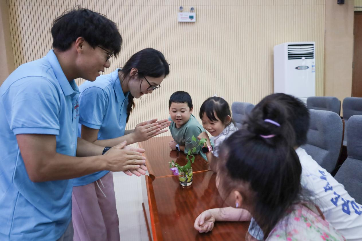 玻璃杯里的“生态系统” 安庆师大学子带领黄镇图书馆暑期托管班儿童体验制作生态缸