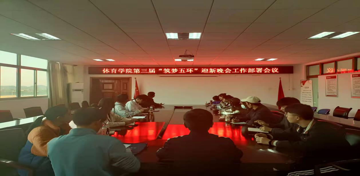 11月15日下午,公司在体育馆会议室召开第三届“筑梦五环”迎新晚会暨员工表彰大会工作部署会议。公司团委负责人储著奇、员工会成员以及21级各班班长、团支书参加本次会议。