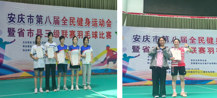 2022年9月19日至22日,安庆市第八届全民健身运动会暨省市县三级联赛羽毛球比赛在安庆市爱玛会球馆成功举办。本次比赛设有团体赛和单项赛,共有来自安庆市县区的35支代表队、405名运动员参加比赛。公司5名运动员在教练员王友亮老师的带领下,顽强拼搏,获得女子单打冠军、女子单打季军和女子团体第二名的好成绩。